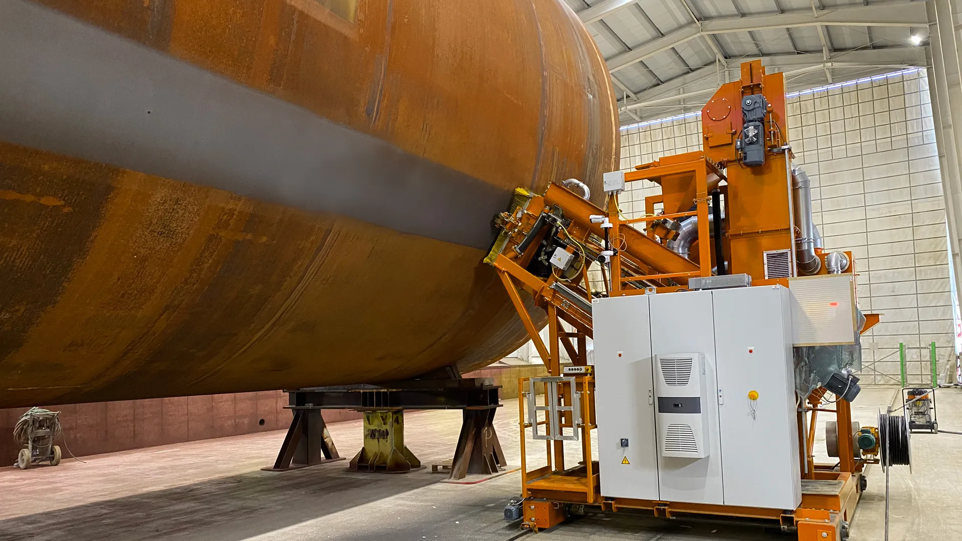Bauhuis liefert Lösungen für das vollautomatische Strahlen von Monopiles mit großen Stahloberflächen. Unsere fortschrittlichen Systeme gewährleisten eine konsistente, qualitativ hochwertige Oberflächenvorbereitung, die den strengsten Industriestandards entspricht, die Beschichtungsleistung verbessert und die Lebensdauer der Fundamente von Windkraftanlagen verlängert.